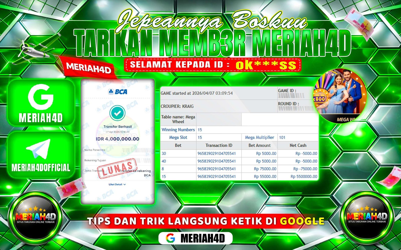 MERIAH4D Bukti Kemenangan MEGA WHEEL