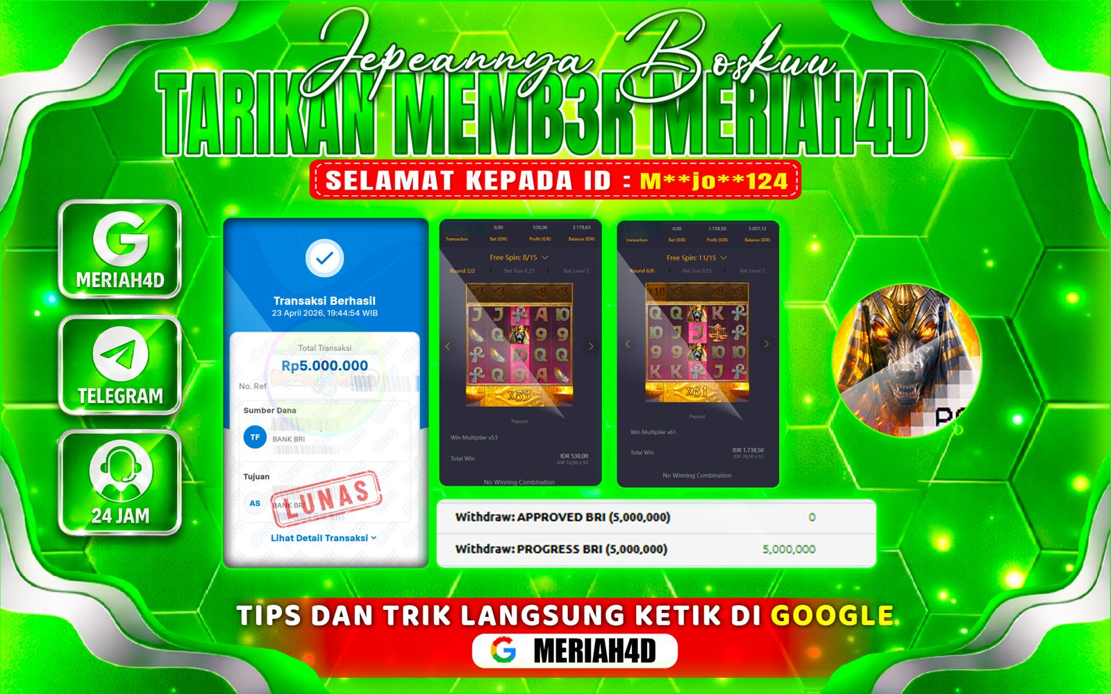 BUKTI KEMENANGAN MERIAH4D GAME SLOT (ANUBIS WRATH)
