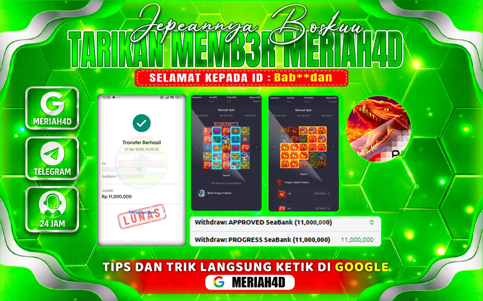 Selamat Kepada ID : Bab**dan Atas Withdraw Rp. 11.000.000 Juta Hari ini. Ditunggu Withdraw Selanjutnya dan ajak juga teman temannya bergabung di Meriah4d