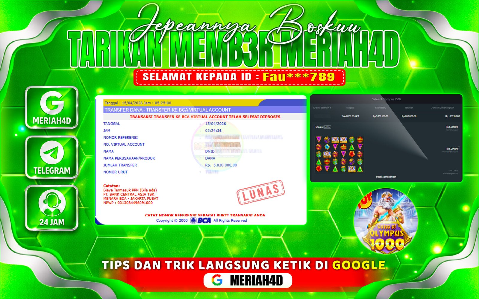 MERIAH4D Bukti Kemenangan GATES OF OLYMPUS 1000