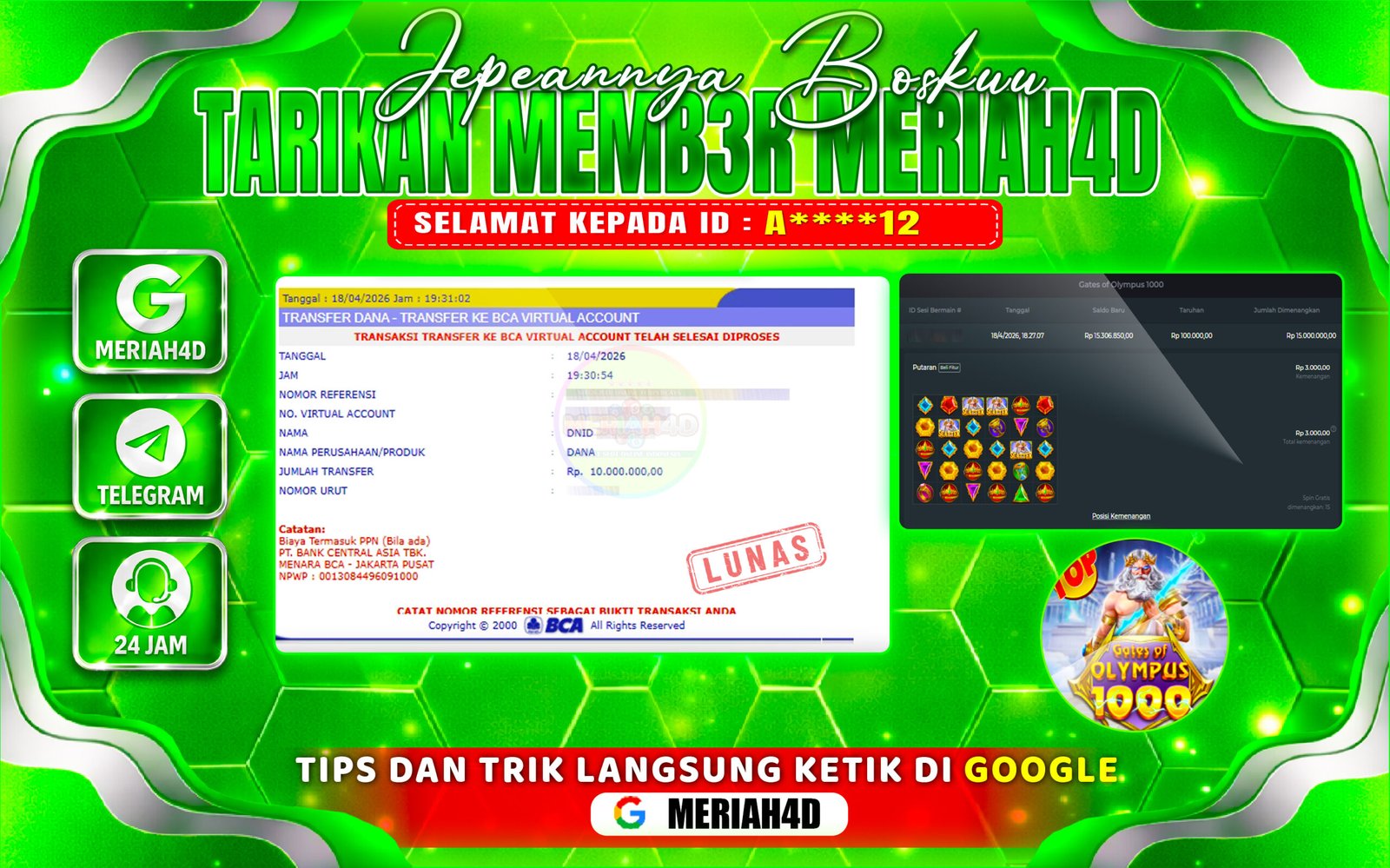 MERIAH4D Bukti Kemenangan SLOT GATES OF OLYMPUS 1000