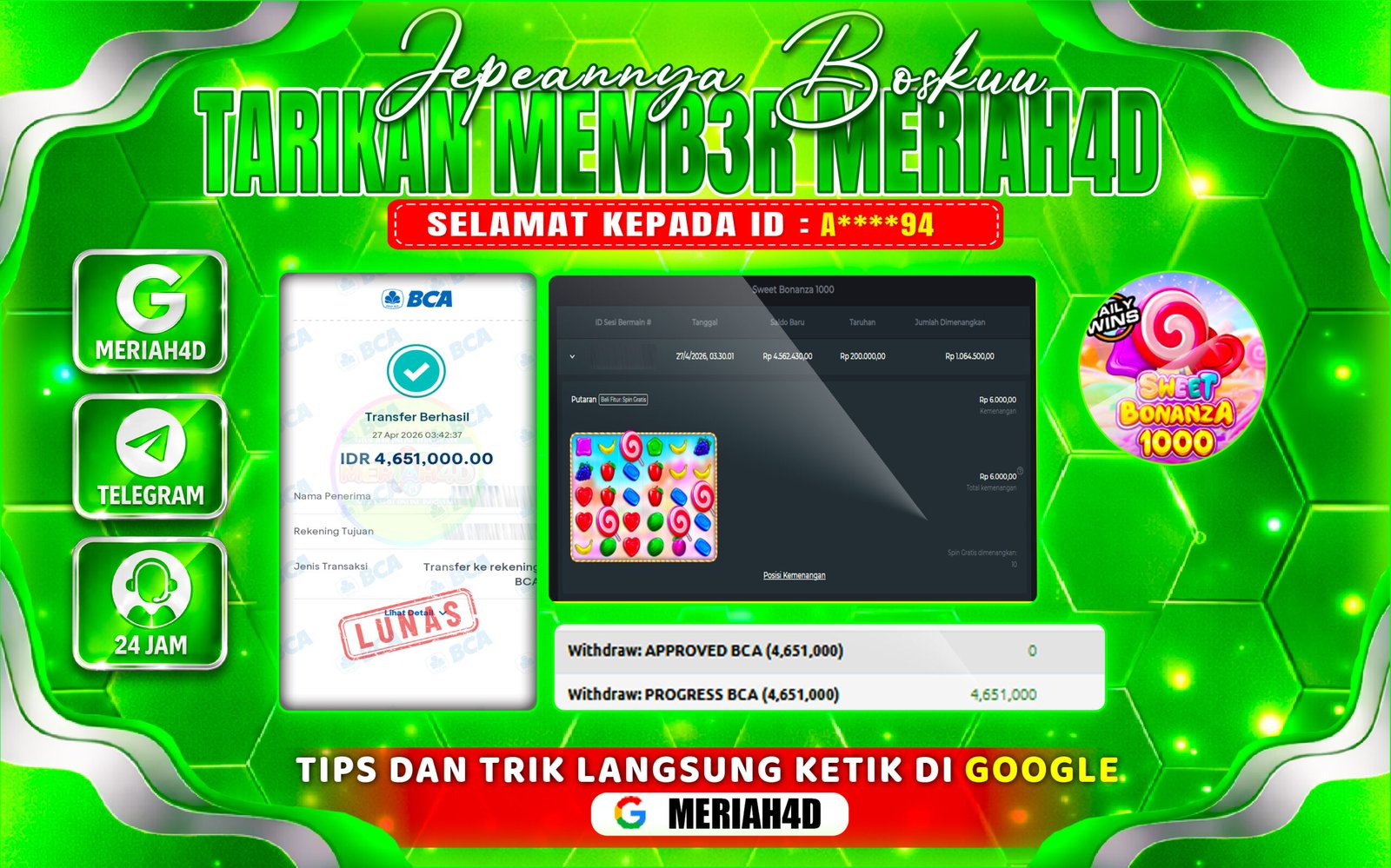 MERIAH4D Bukti Kemenangan SWEET BONANZA 1000