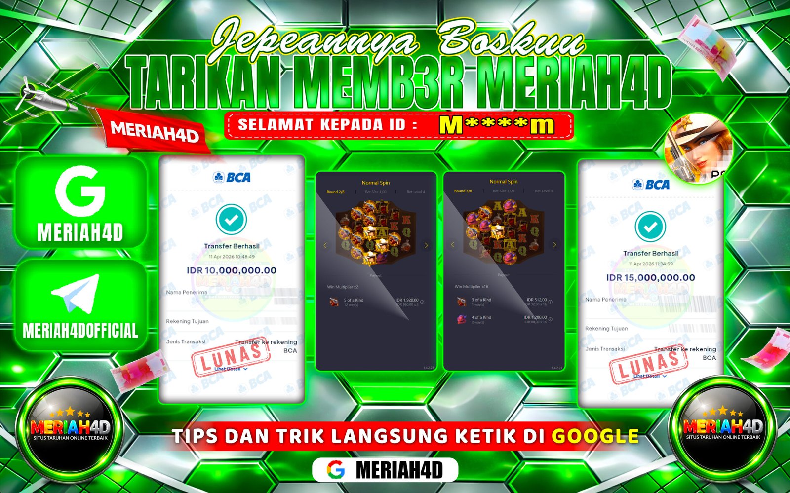 Selamat Kepada ID : Mm****m Atas Withdraw Rp. 10.000.000 Juta Hari ini. Ditunggu Withdraw Selanjutnya dan ajak juga teman temannya bergabung di Meriah4d