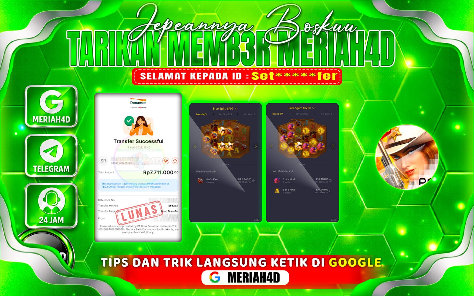 Selamat Kepada ID : Set*****fer Atas Withdraw Rp. 7.711.000 Juta Hari ini. Ditunggu Withdraw Selanjutnya dan ajak juga teman temannya bergabung di Meriah4d