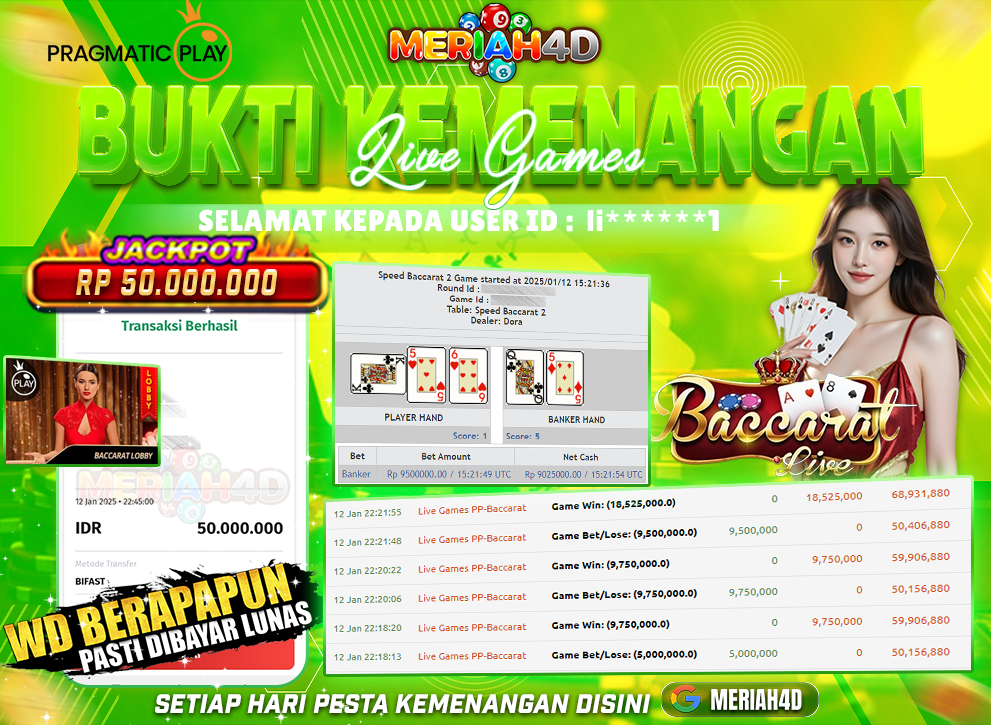 MERIAH4D Bukti Kemenangan LIVE CASINO BACCARAT