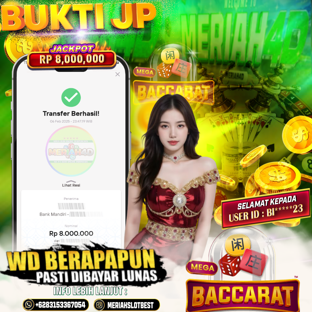 Selamat Kepada ID : BI******23 Atas Withdraw Rp. 8.000.000 Juta Hari ini. Ditunggu Withdraw Selanjutnya dan ajak juga teman temannya bergabung di Meriah4d