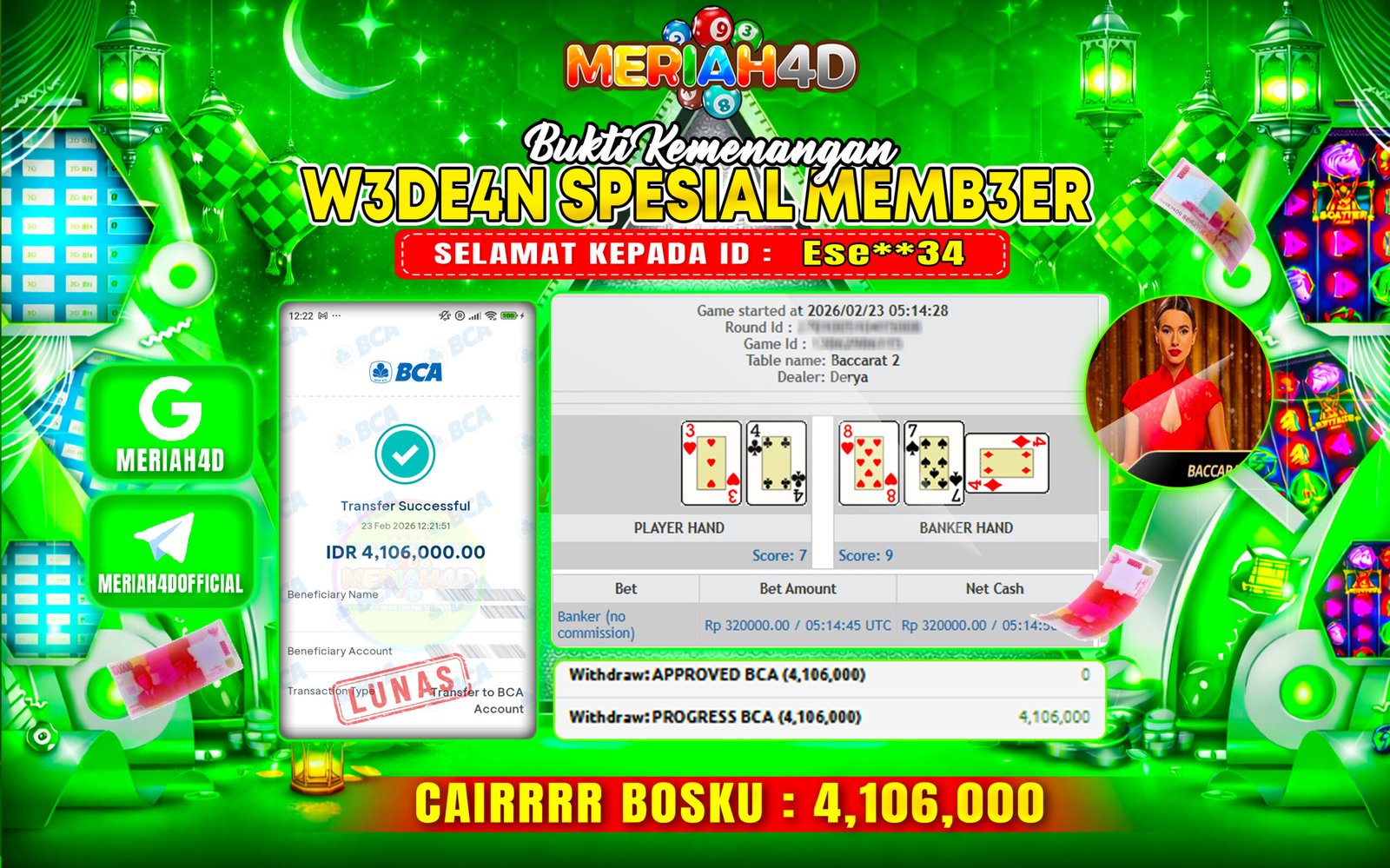 MERIAH4D Bukti Kemenangan LIVE CASINO BACCARAT