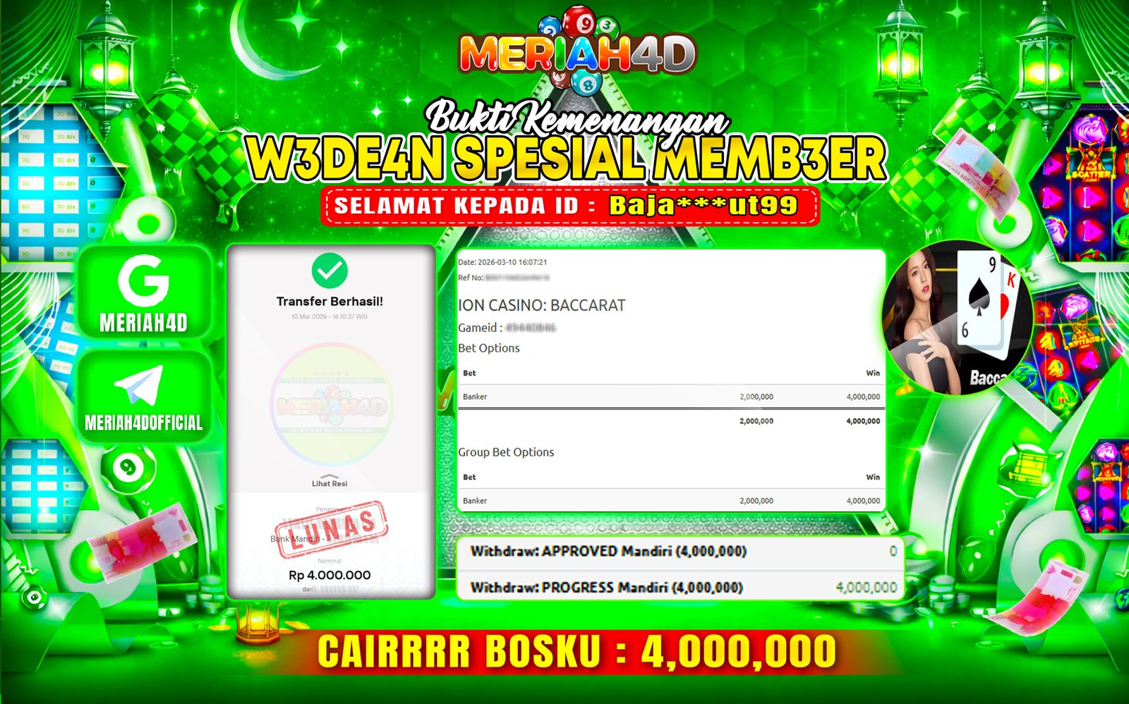 MERIAH4D Bukti Kemenangan LIVE CASINO BACCARAT