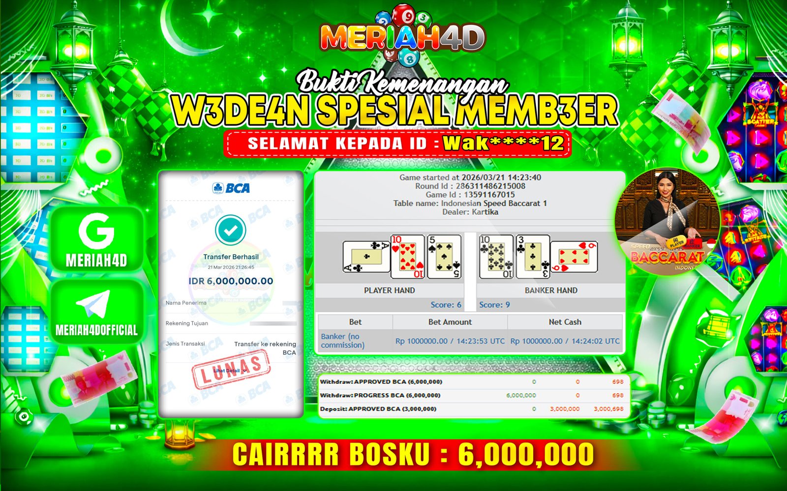 MERIAH4D Bukti Kemenangan LIVE CASINO BACCARAT
