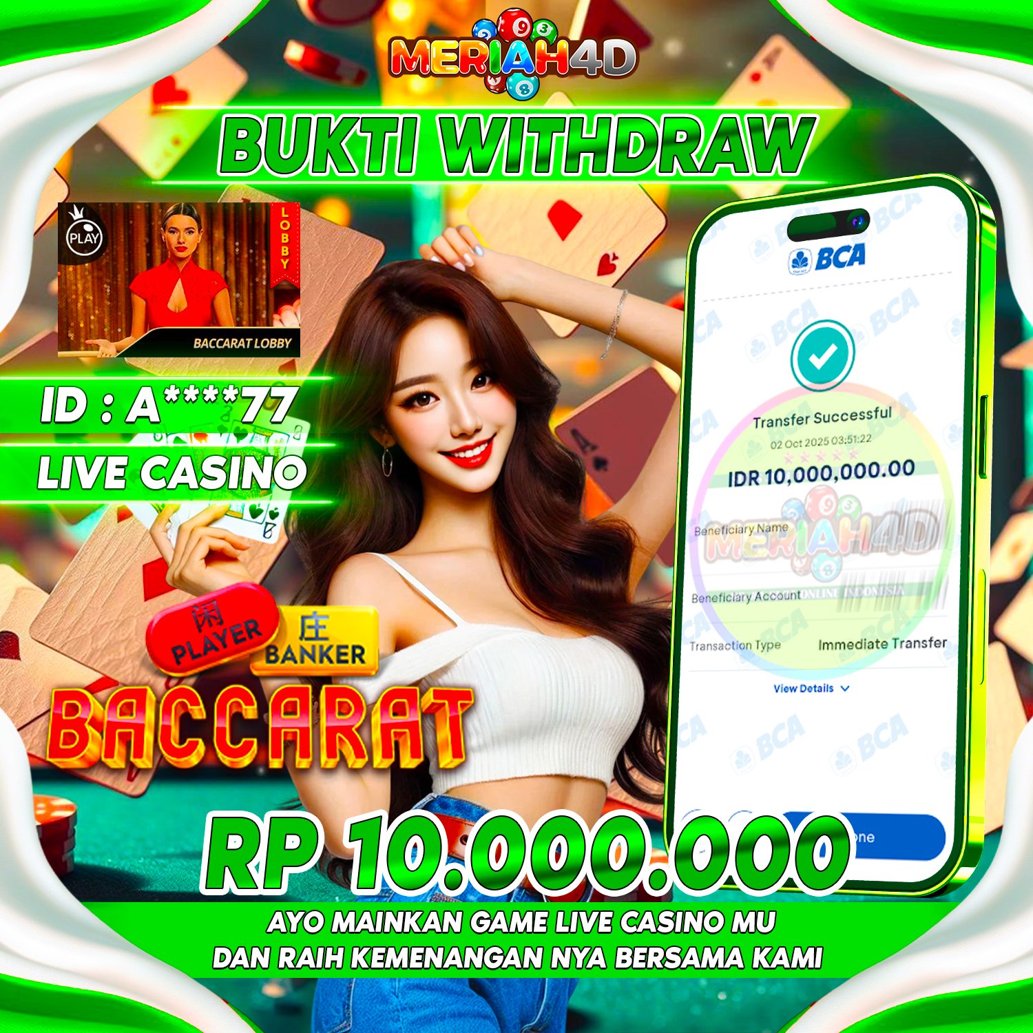 MERIAH4D Bukti Kemenangan LIVE CASINO BACCARAT LOBBY