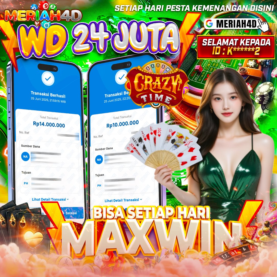 Selamat Kepada ID : K******2 Atas Withdraw Rp. 24.000.000 Juta Hari ini. Ditunggu Withdraw Selanjutnya dan ajak juga teman temannya bergabung di Meriah4d