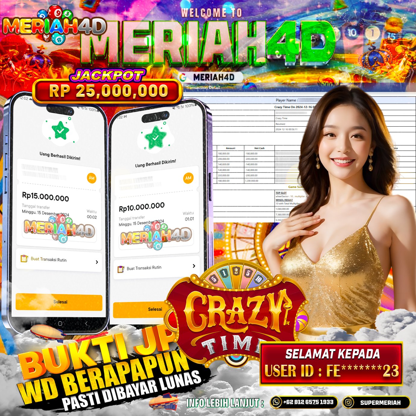 Selamat Kepada ID : FE*******23 Atas Withdraw Rp. 25.000.000 Juta Hari ini. Ditunggu Withdraw Selanjutnya dan ajak juga teman temannya bergabung di Meriah4d