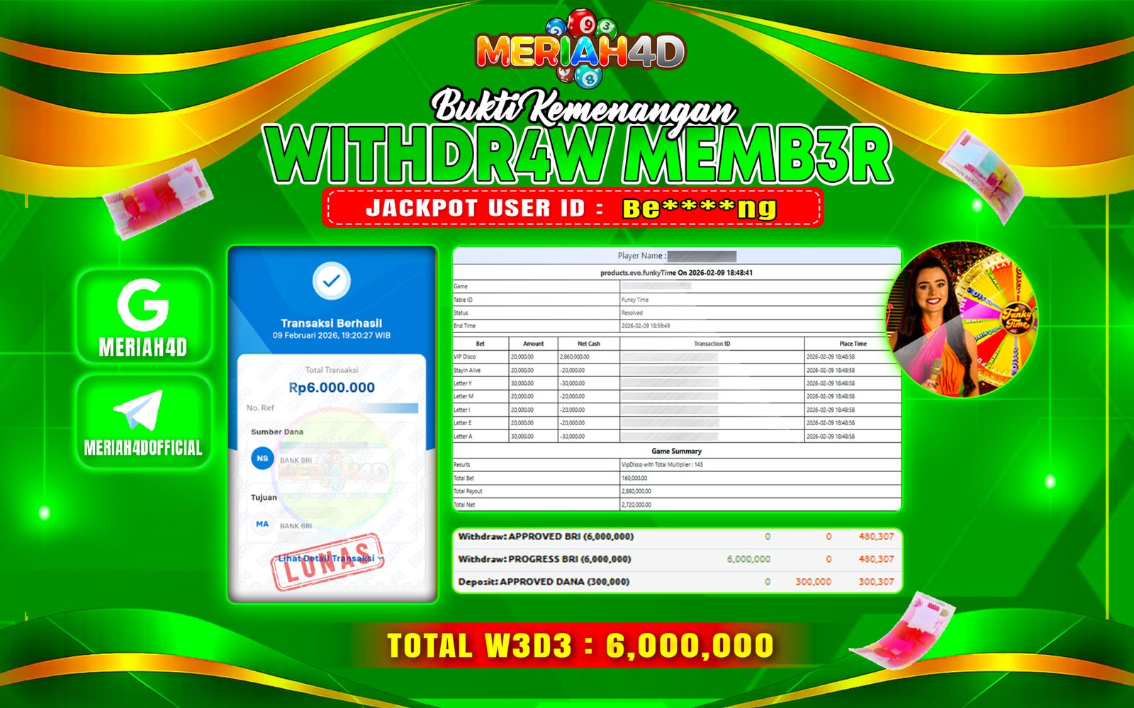MERIAH4D Bukti Kemenangan LIVE CASINO FUNKY TIME