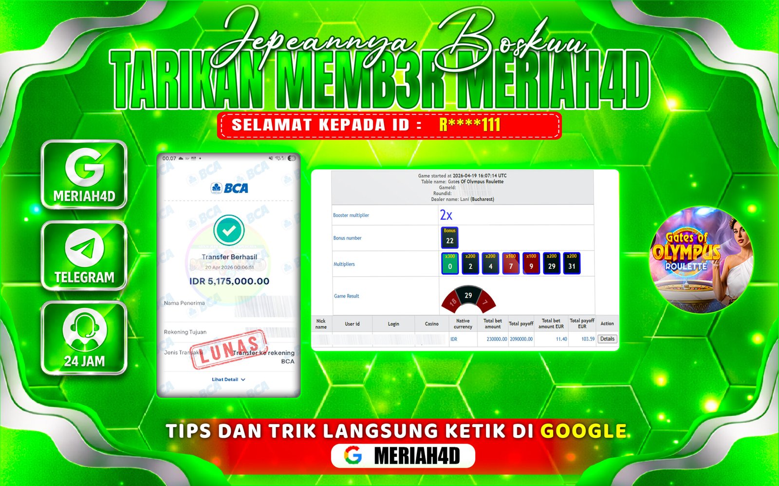 MERIAH4D Bukti Kemenangan LIVE CASINO GATES OF OLYMPUS ROULETTE