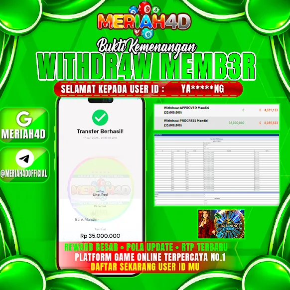 Selamat Kepada ID : YA******NG Atas Withdraw Rp. 35.000.000 Juta Hari ini. Ditunggu Withdraw Selanjutnya dan ajak juga teman temannya bergabung di Meriah4d
