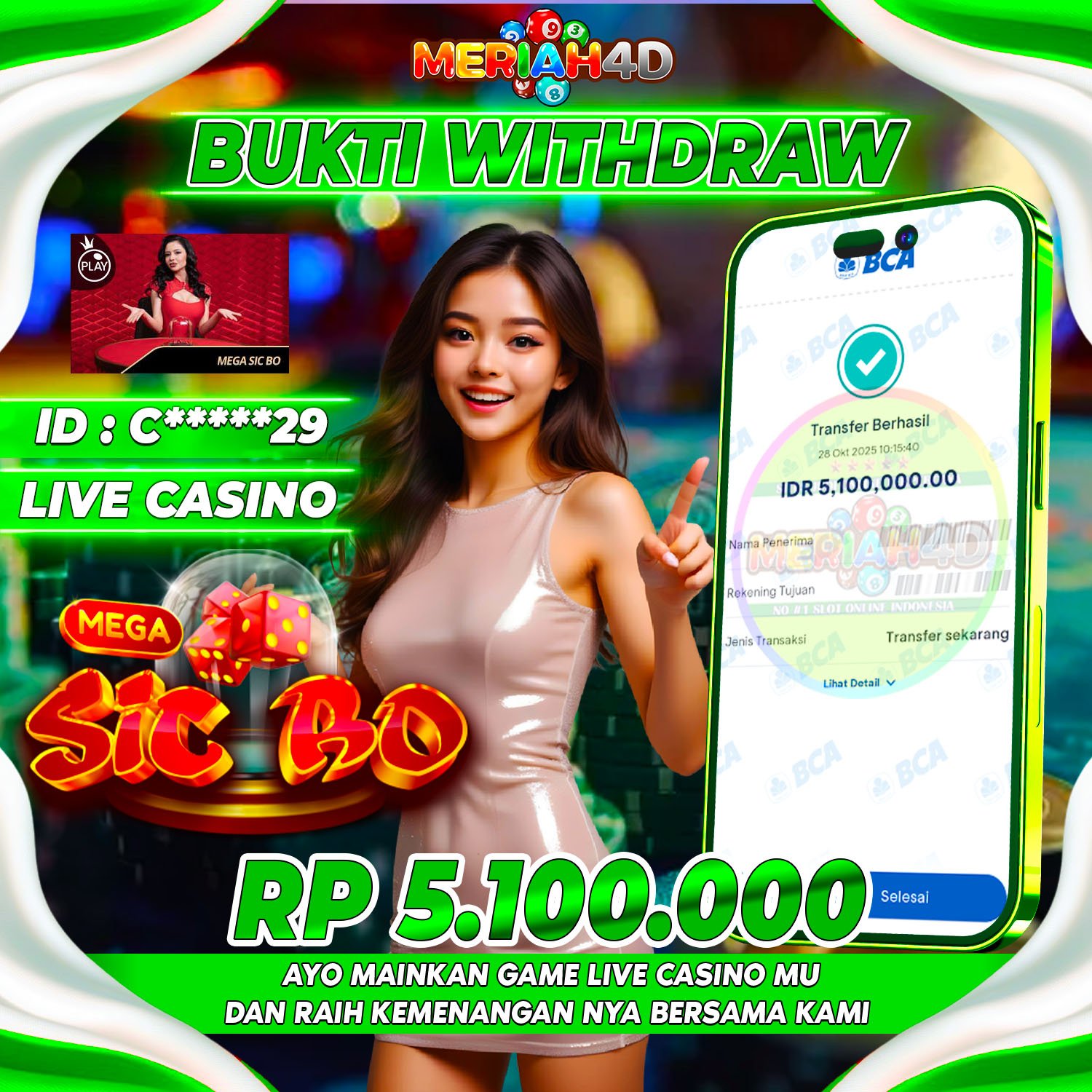 MERIAH4D Bukti Kemenangan LIVE CASINO MEGA SICBO