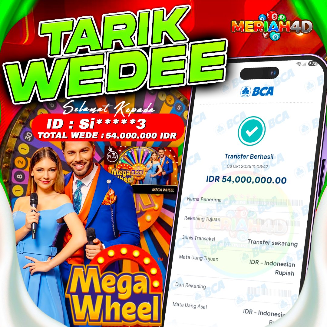 Selamat Kepada ID : SI******3 Atas Withdraw Rp. 54.000.000 Juta Hari ini. Ditunggu Withdraw Selanjutnya dan ajak juga teman temannya bergabung di Meriah4d