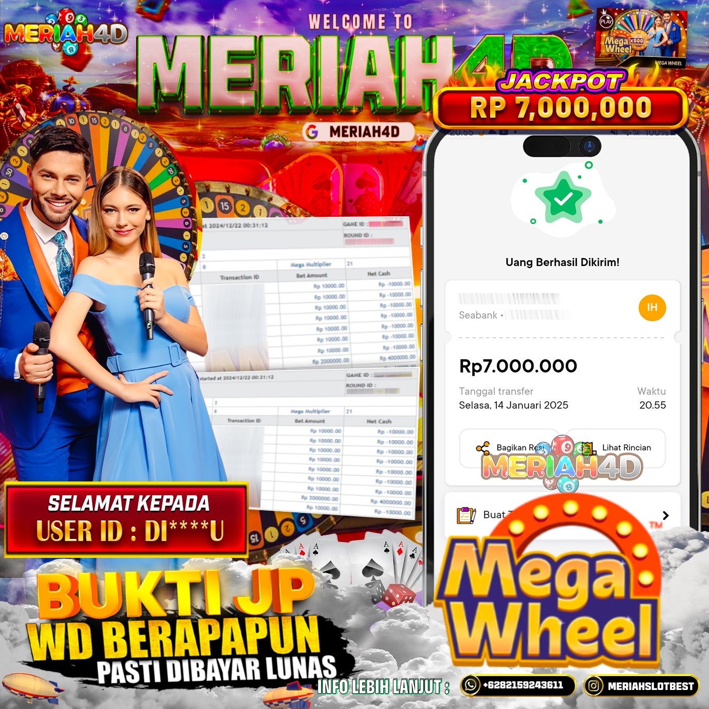 Selamat Kepada ID : DI******U Atas Withdraw Rp. 7.000.000 Juta Hari ini. Ditunggu Withdraw Selanjutnya dan ajak juga teman temannya bergabung di Meriah4d