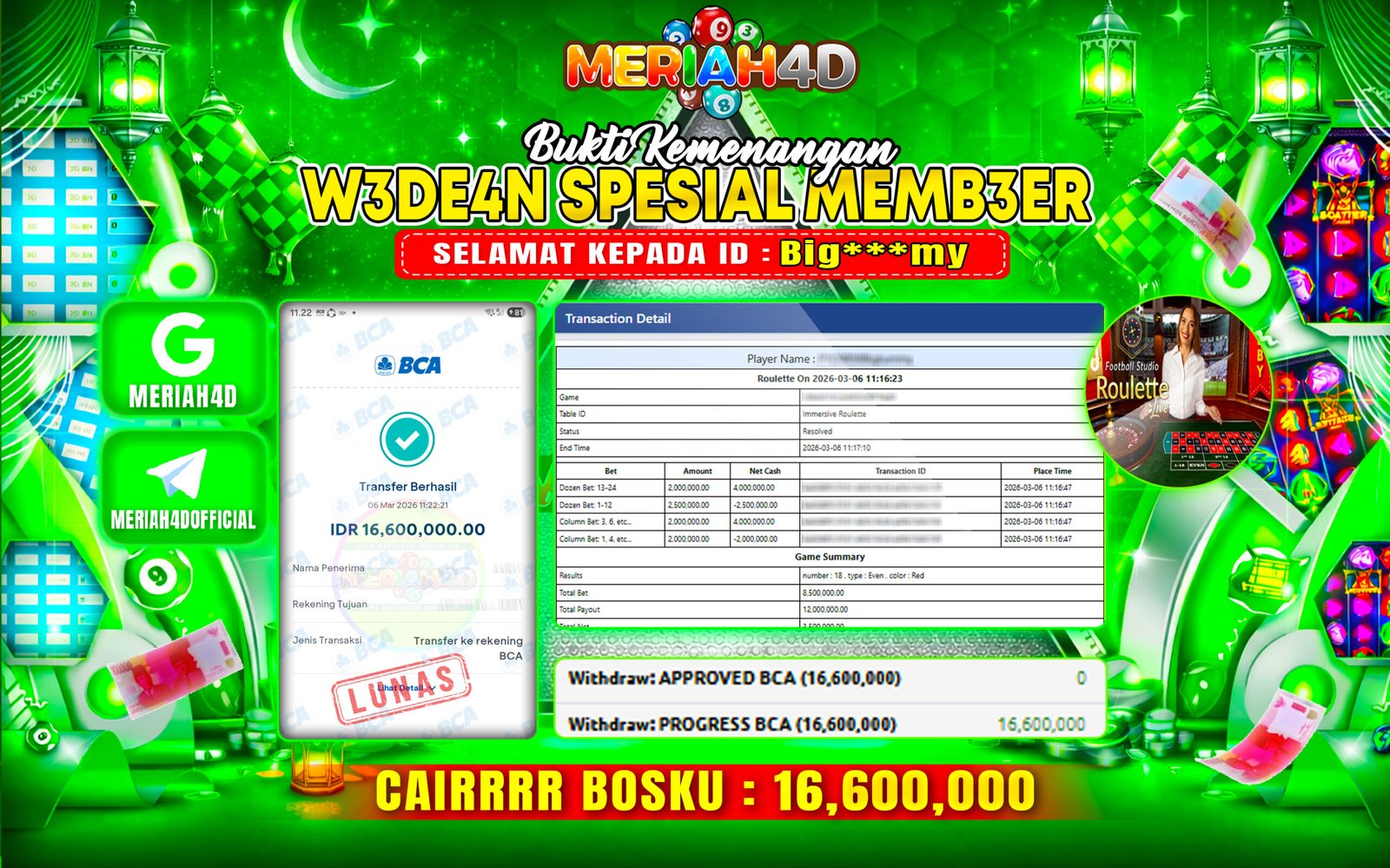 MERIAH4D Bukti Kemenangan LIVE CASINO ROULETTE