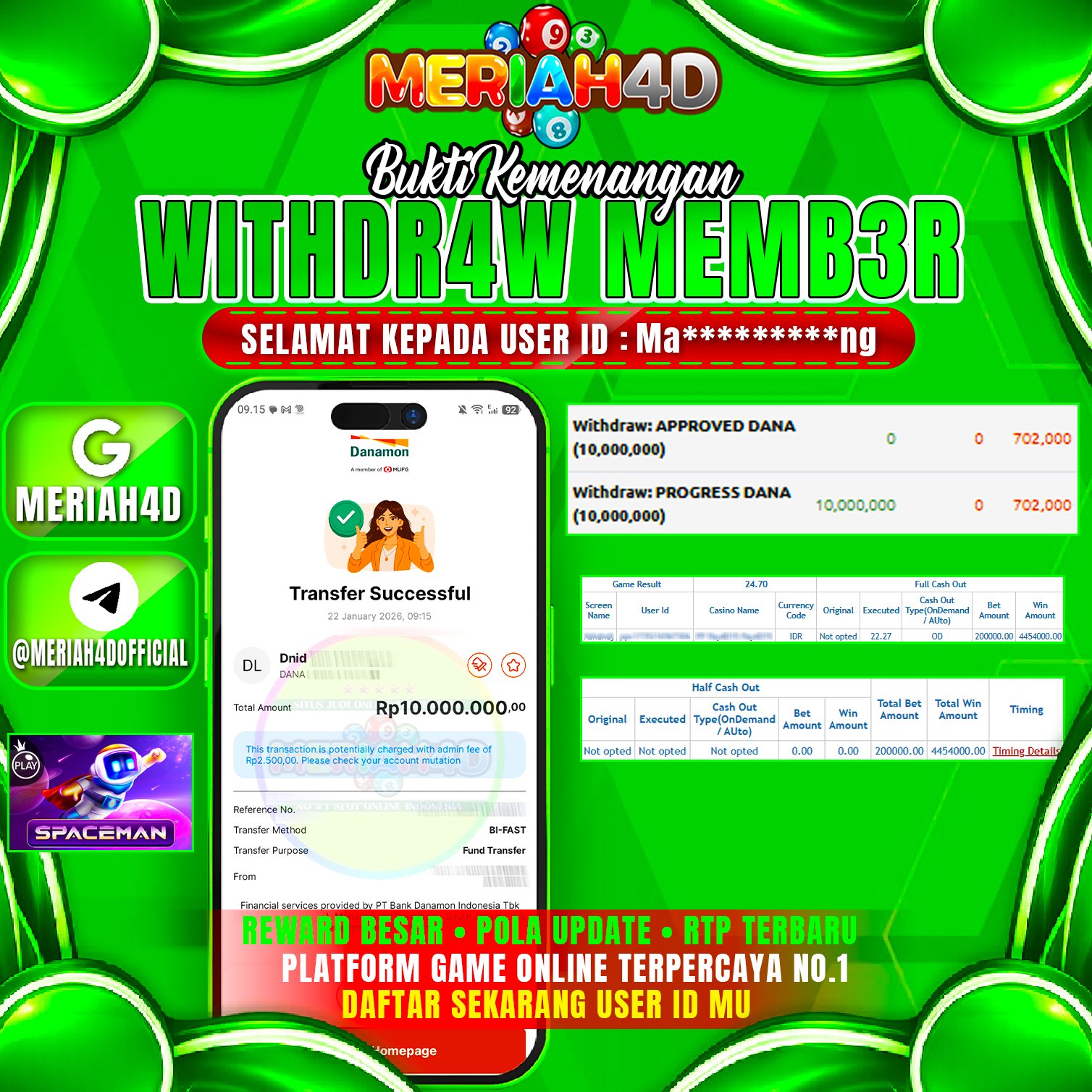 MERIAH4D Bukti Kemenangan LIVE CASINO SPACMAN