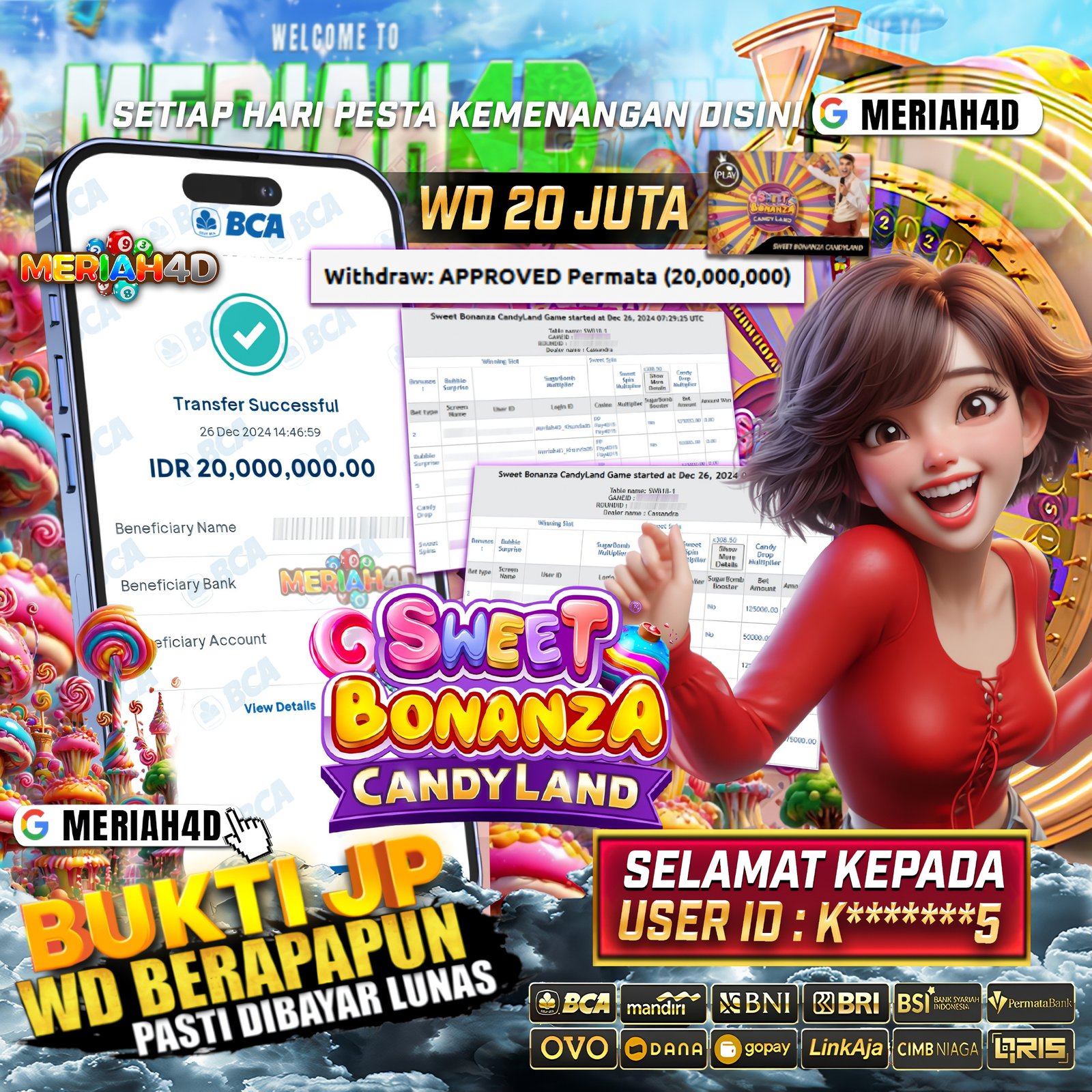 MERIAH4D Bukti Kemenangan Slot LIVE CASINO SWEET BONANZA CANDY LAND