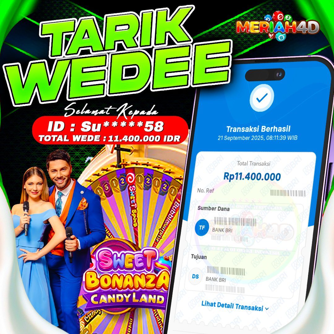 Selamat Kepada ID : SU********58 Atas Withdraw Rp. 11.400.000 Juta Hari ini. Ditunggu Withdraw Selanjutnya dan ajak juga teman temannya bergabung di Meriah4d