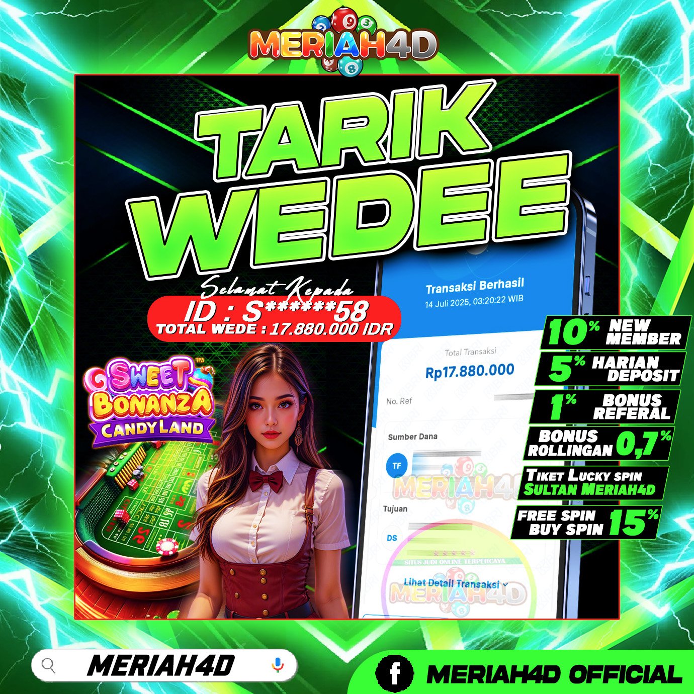 Selamat Kepada ID : S*******58 Atas Withdraw Rp. 17.880.000 Juta Hari ini. Ditunggu Withdraw Selanjutnya dan ajak juga teman temannya bergabung di Meriah4d