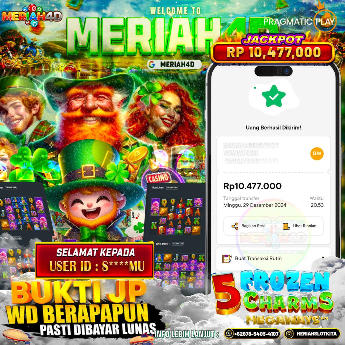 Selamat Kepada ID : S*****MU Atas Withdraw Rp. 10.477.000 Juta Hari ini. Ditunggu Withdraw Selanjutnya dan ajak juga teman temannya bergabung di Meriah4d