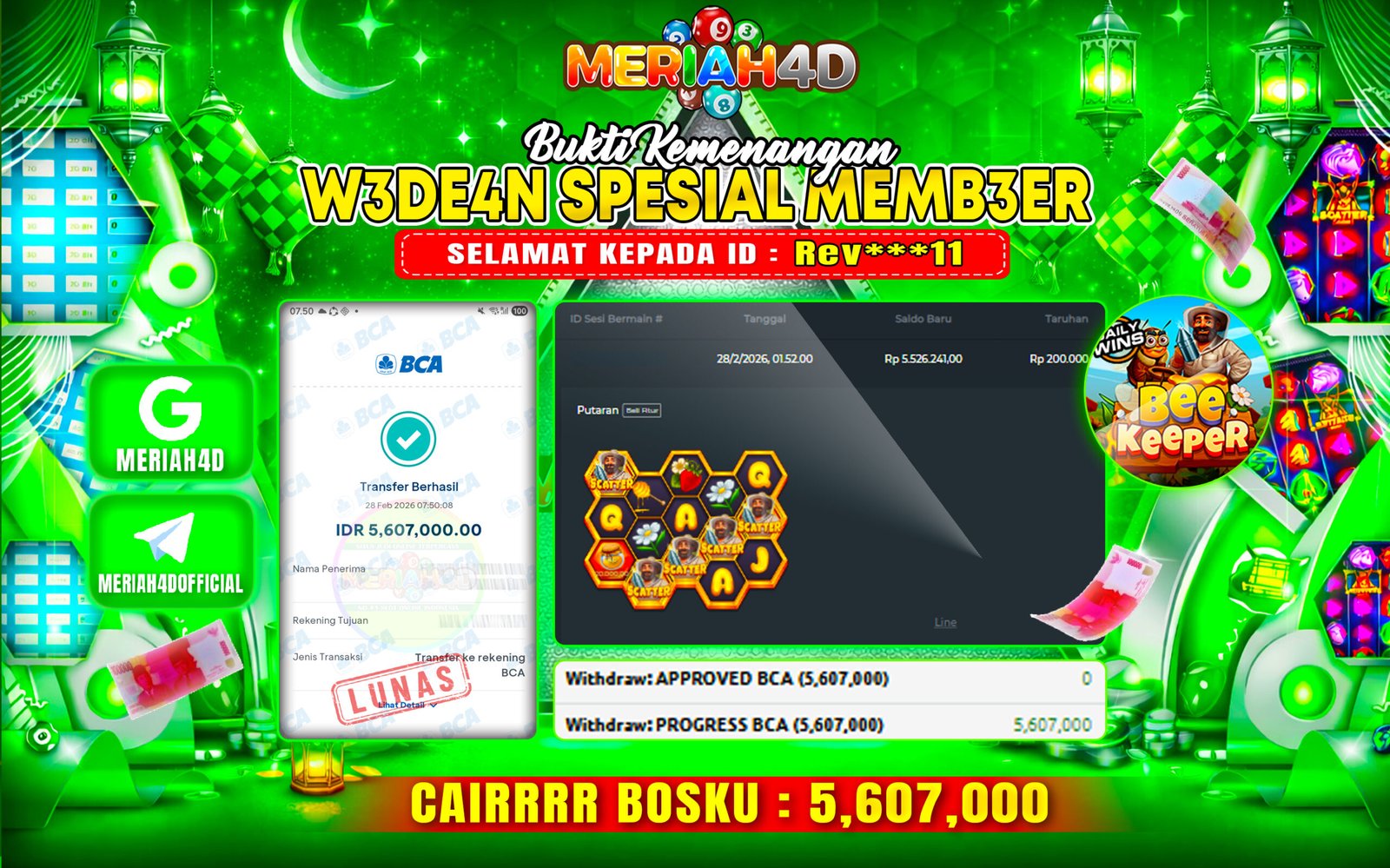 Selamat Kepada ID : REV***11 Atas Withdraw Rp. 5.607.000 Juta Hari ini. Ditunggu Withdraw Selanjutnya dan ajak juga teman temannya bergabung di Meriah4d