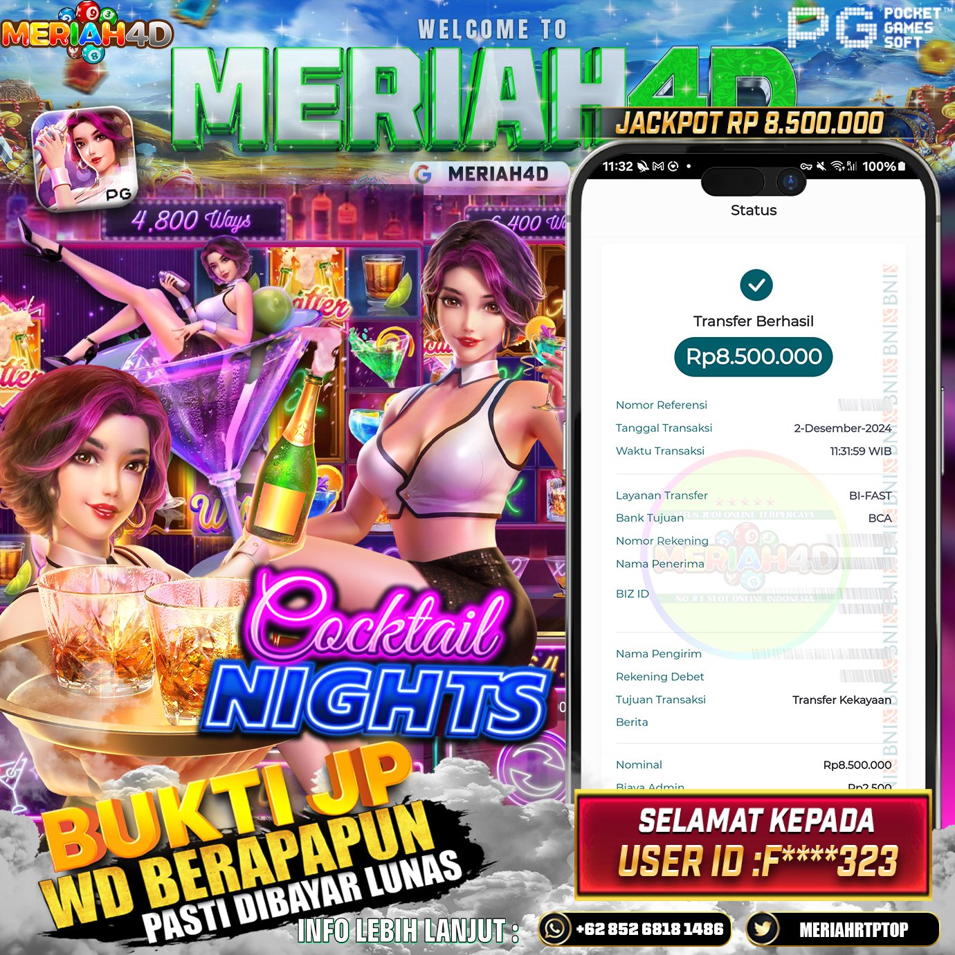 Selamat Kepada Id : F*******323 Atas Withdraw Rp. 8.500.000 Juta Hari ini. Ditunggu Withdraw Selanjutnya dan ajak juga teman temannya bergabung di Meriah4d