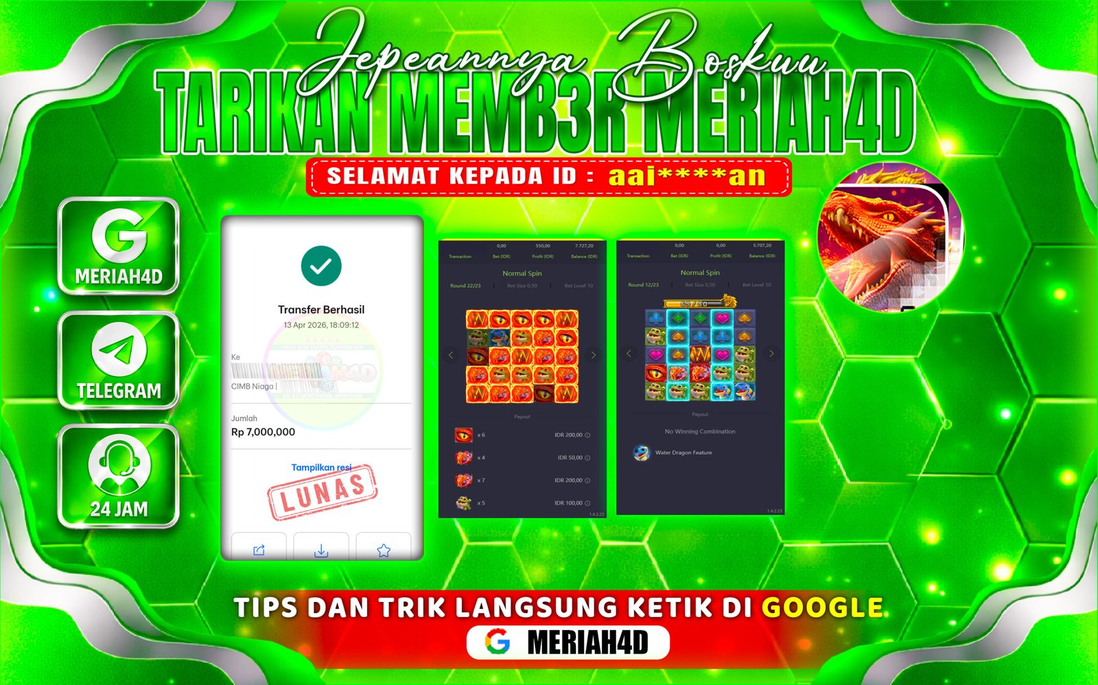 Selamat Kepada ID : aai******an Atas Withdraw Rp. 7.000.000 Juta Hari ini. Ditunggu Withdraw Selanjutnya dan ajak juga teman temannya bergabung di Meriah4d