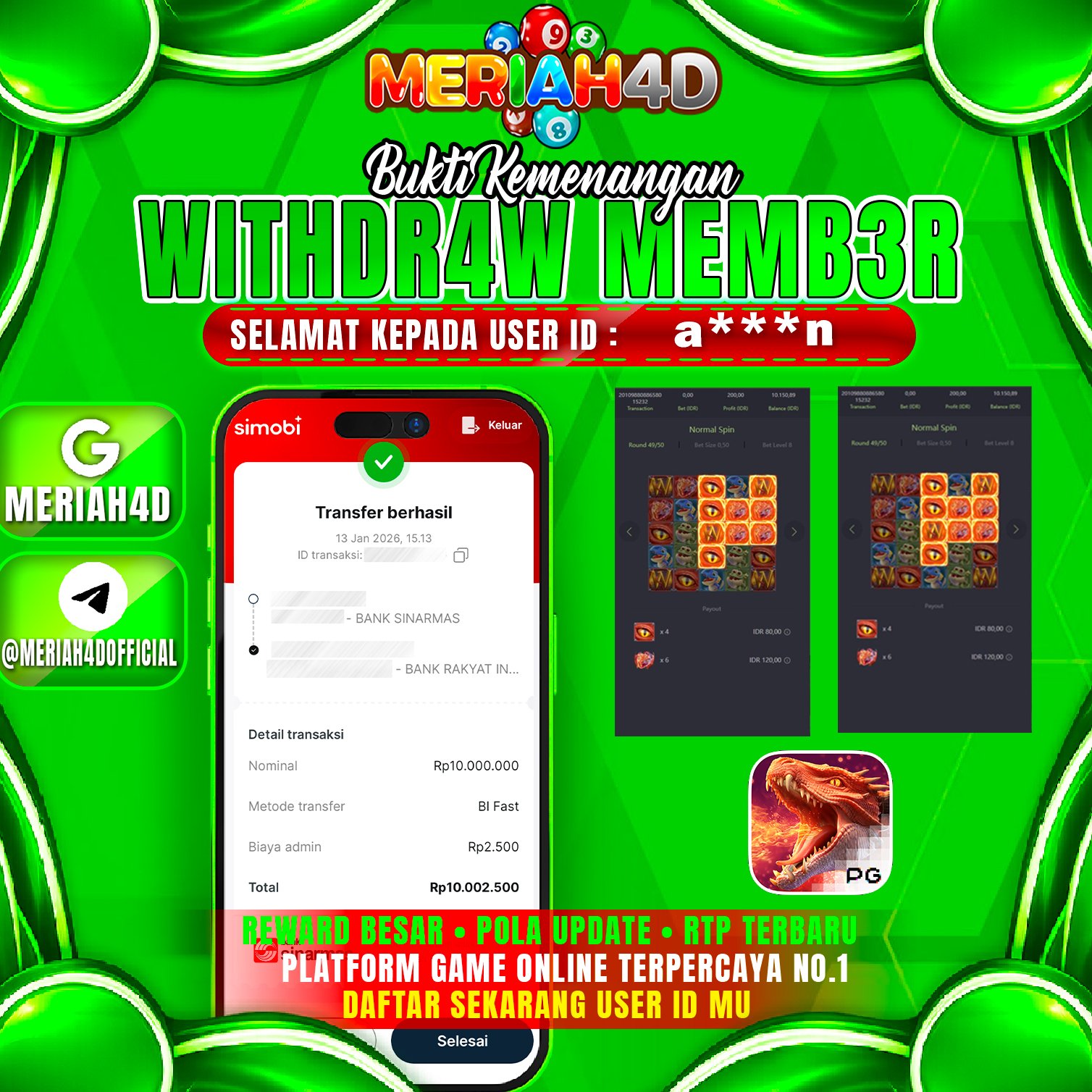 MERIAH4D Bukti Kemenangan SLOT DRAGON HATCH 2