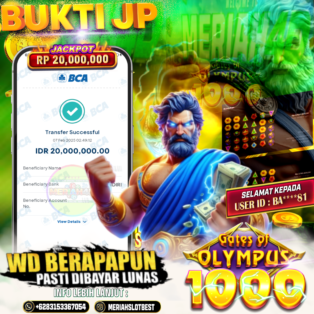 Selamat Kepada ID : BA******81 Atas Withdraw Rp. 20.000.000 Juta Hari ini. Ditunggu Withdraw Selanjutnya dan ajak juga teman temannya bergabung di Meriah4d