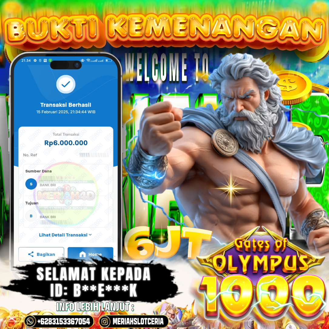 Selamat Kepada ID : B******K Atas Withdraw Rp. 6.000.000 Juta Hari ini. Ditunggu Withdraw Selanjutnya dan ajak juga teman temannya bergabung di Meriah4d