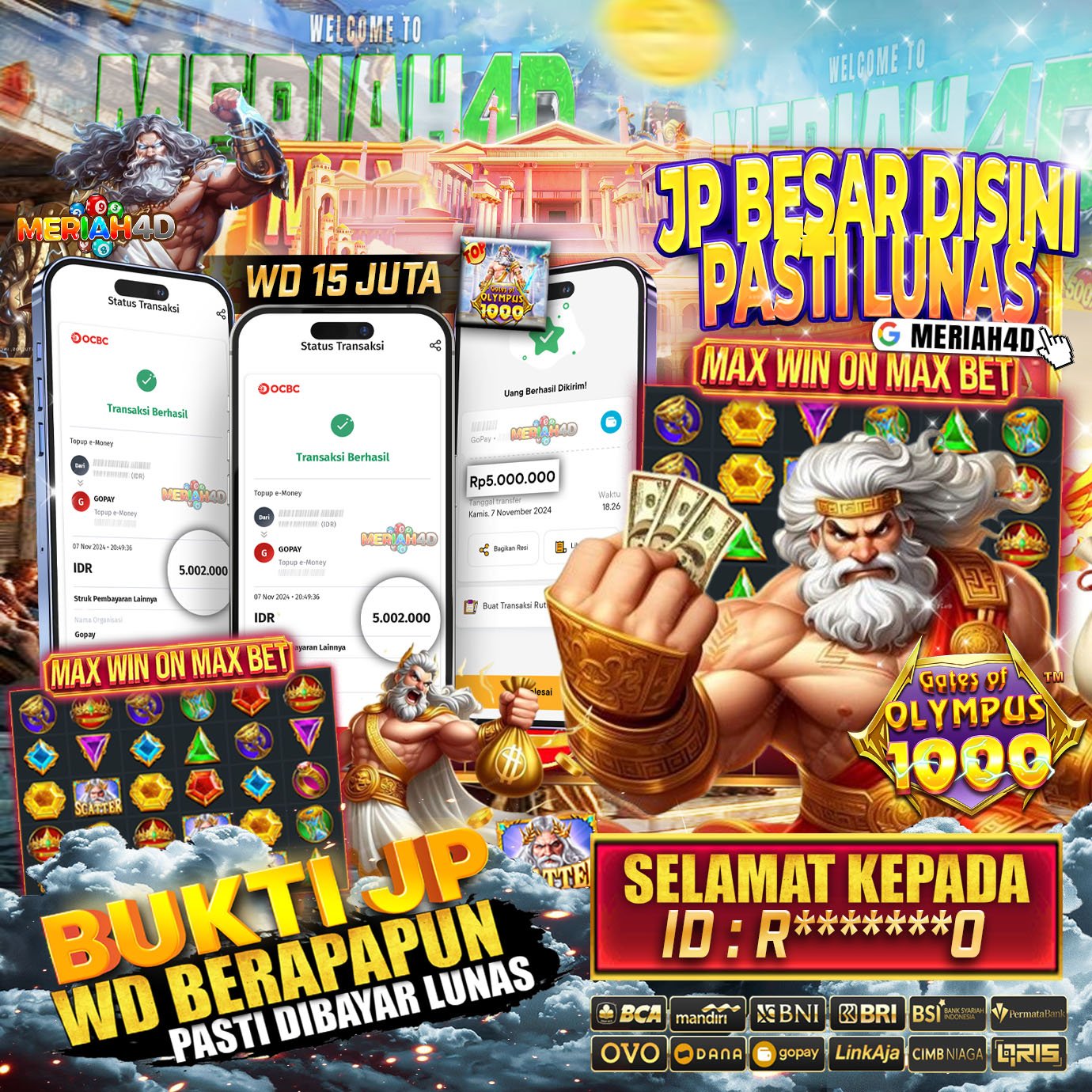 MERIAH4D Bukti Kemenangan Slot GATES OF OLYMPUS 1000