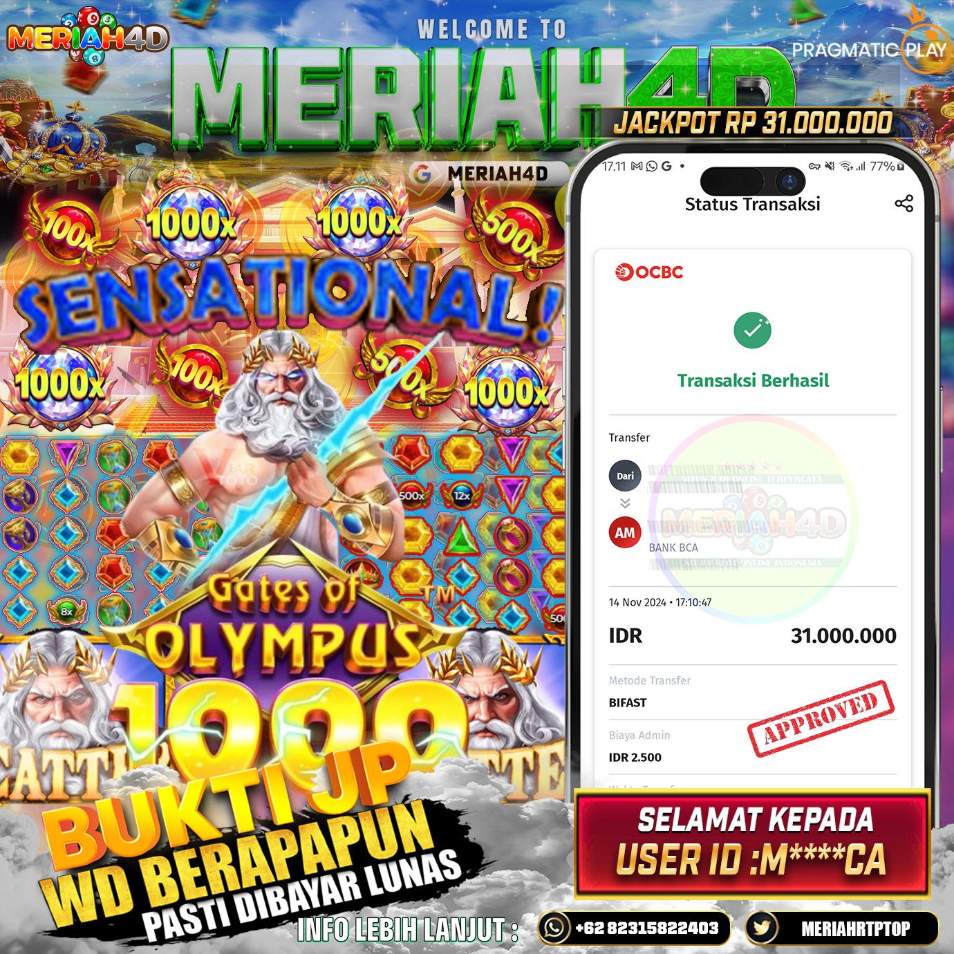 MERIAH4D Bukti Kemenangan Slot GATES OF OLYMPUS 1000