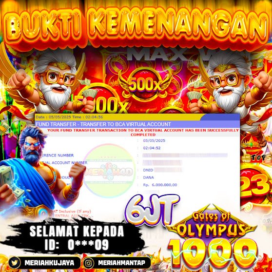 Selamat Kepada ID : 0*****09 Atas Withdraw Rp. 6,000,000 Juta Hari ini. Ditunggu Withdraw Selanjutnya dan ajak juga teman temannya bergabung di Meriah4d