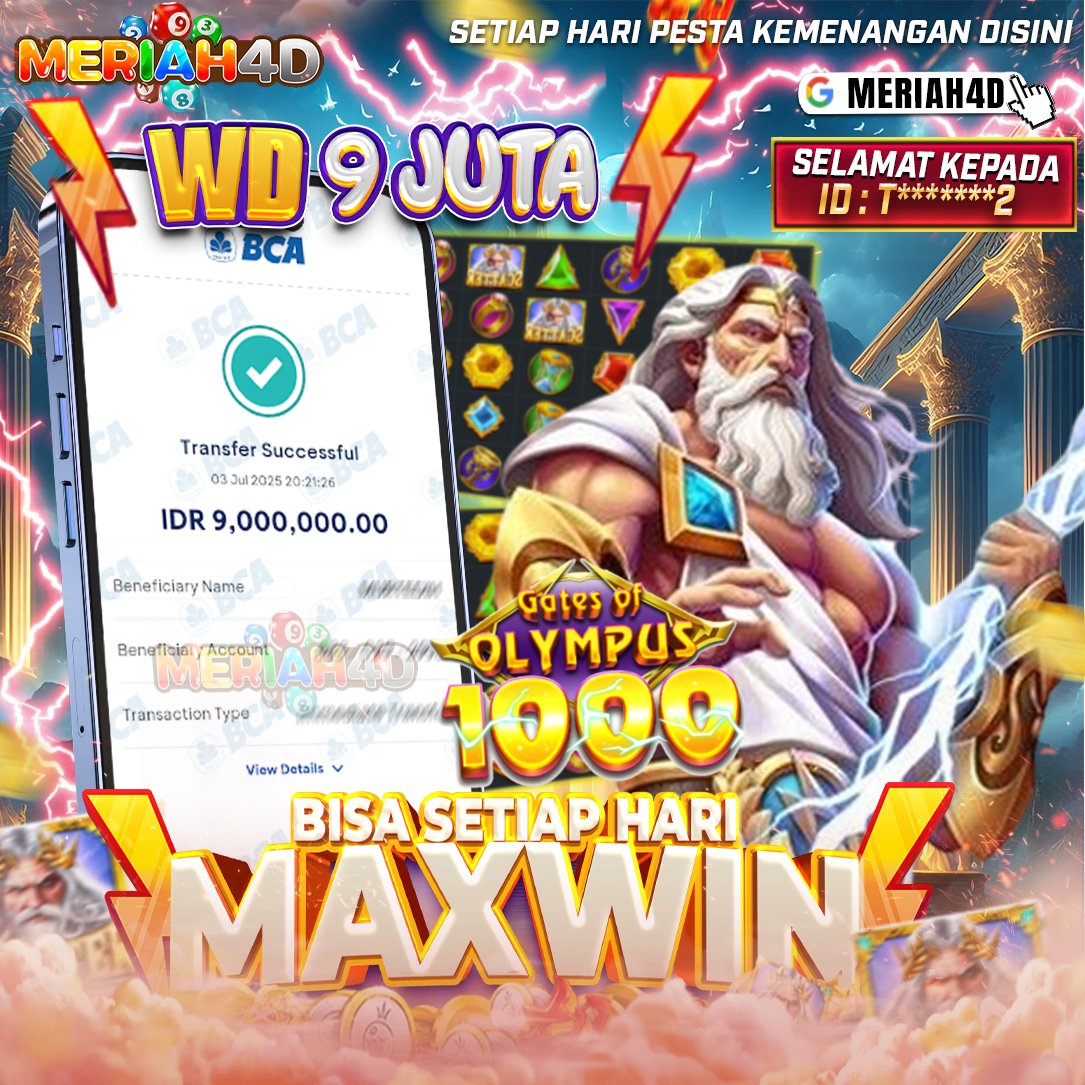 Selamat Kepada ID : T******2 Atas Withdraw Rp. 9.000.000 Juta Hari ini. Ditunggu Withdraw Selanjutnya dan ajak juga teman temannya bergabung di Meriah4d