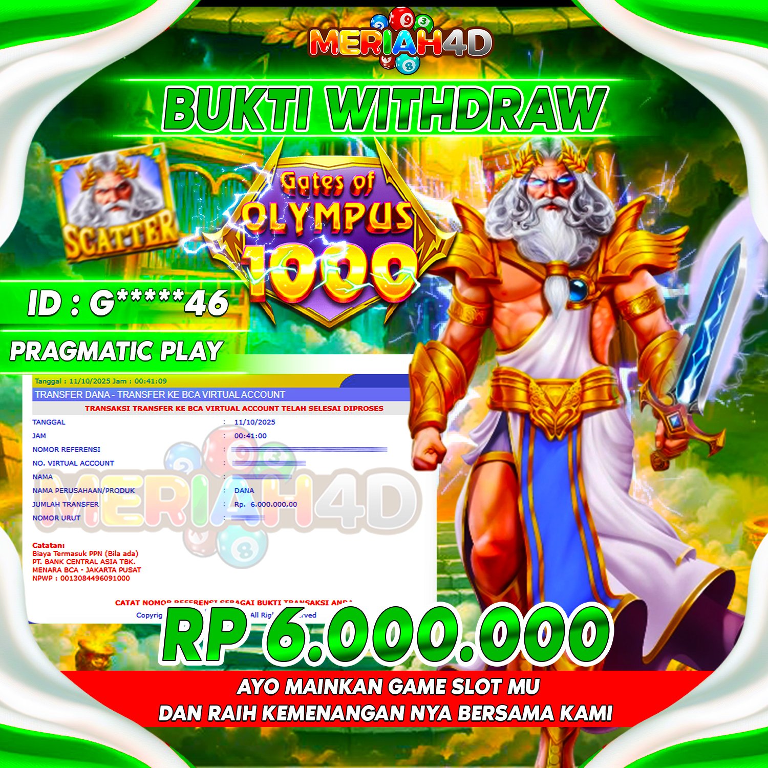 MERIAH4D Bukti Kemenangan SLOT GATES OF OLYMPUS 1000