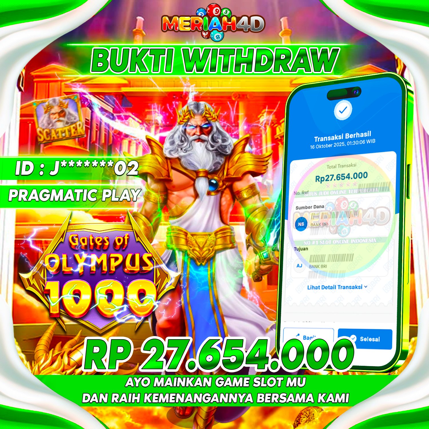Selamat Kepada ID : J******02 Atas Withdraw Rp. 27.654.000 Juta Hari ini. Ditunggu Withdraw Selanjutnya dan ajak juga teman temannya bergabung di Meriah4d