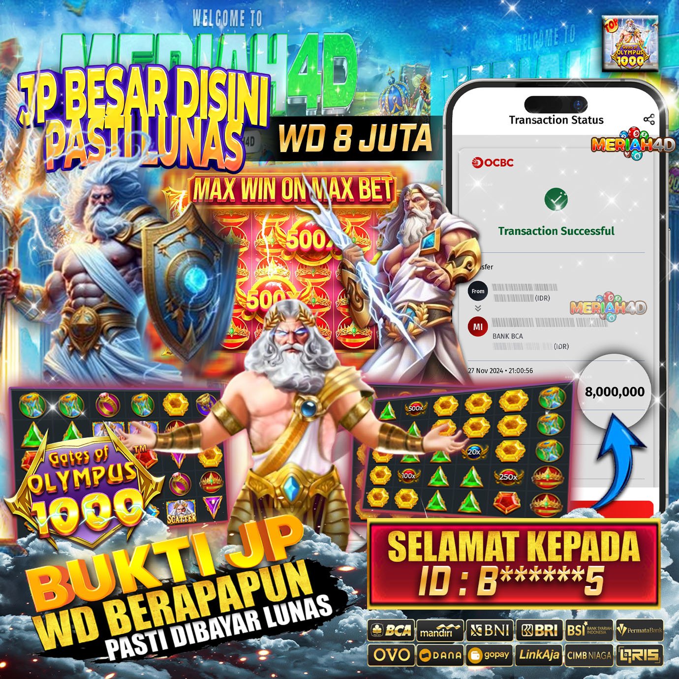 MERIAH4D Bukti Kemenangan Slot GATES OF OLYMPUS 1000