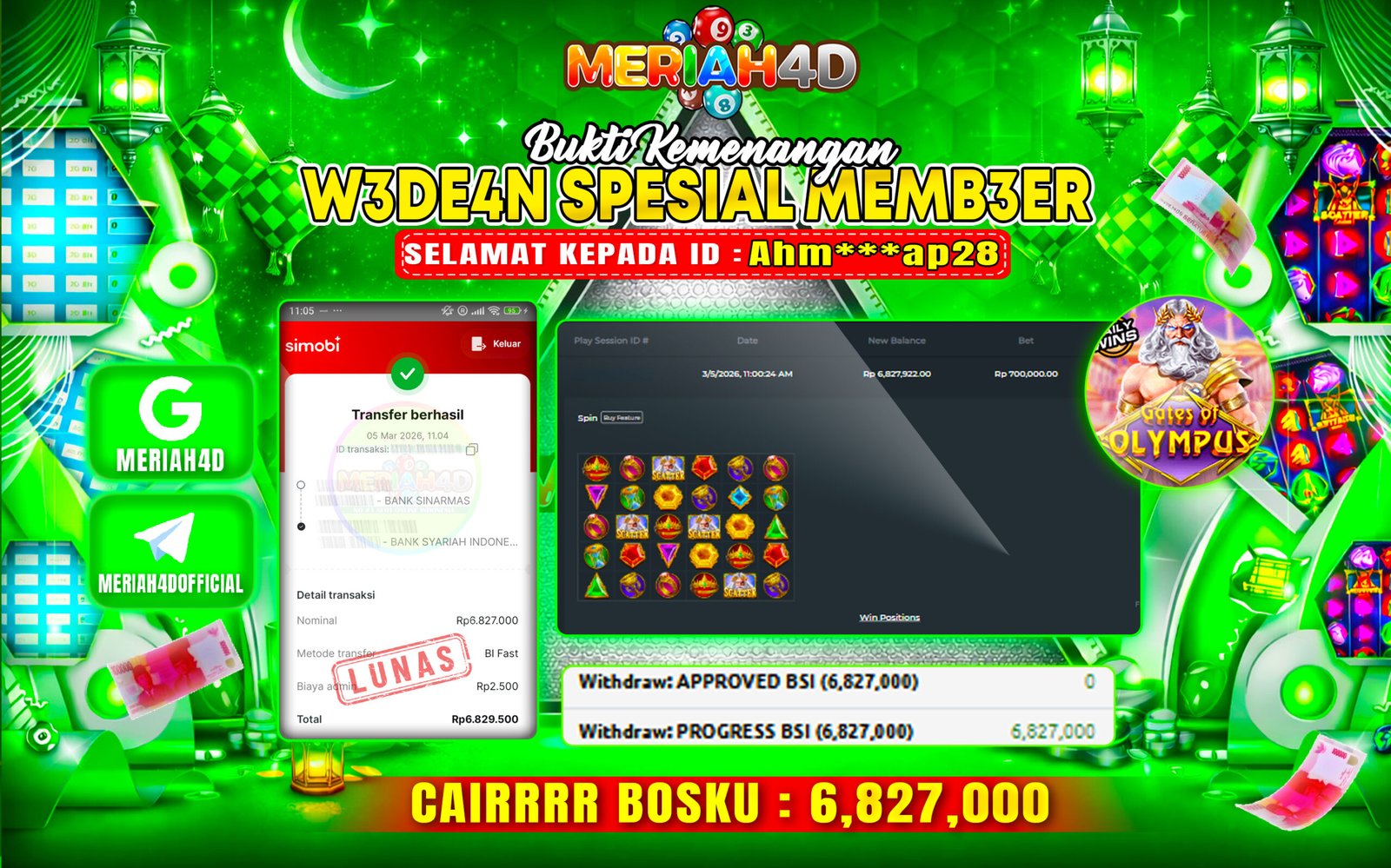 Selamat Kepada ID : ahm***ap28 Atas Withdraw Rp. 6.827.000 Juta Hari ini. Ditunggu Withdraw Selanjutnya dan ajak juga teman temannya bergabung di Meriah4d