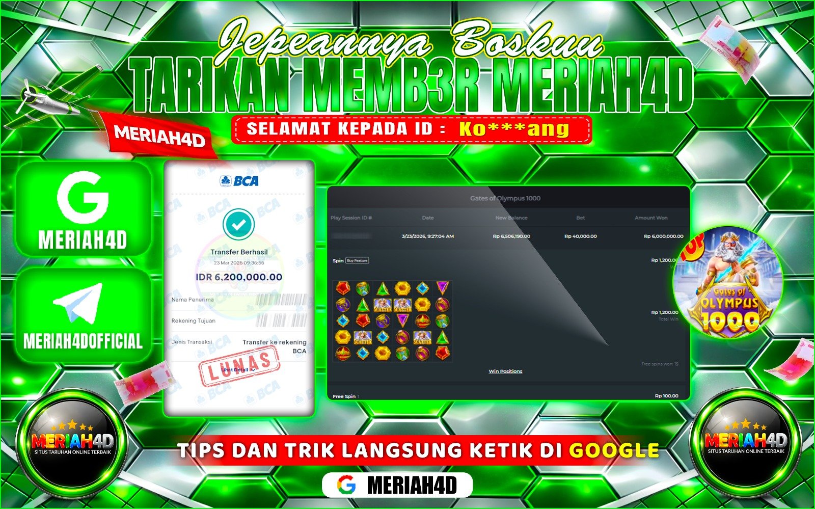 Selamat Kepada ID : Ko***ang Atas Withdraw Rp. 6.200.000 Juta Hari ini. Ditunggu Withdraw Selanjutnya dan ajak juga teman temannya bergabung di Meriah4d