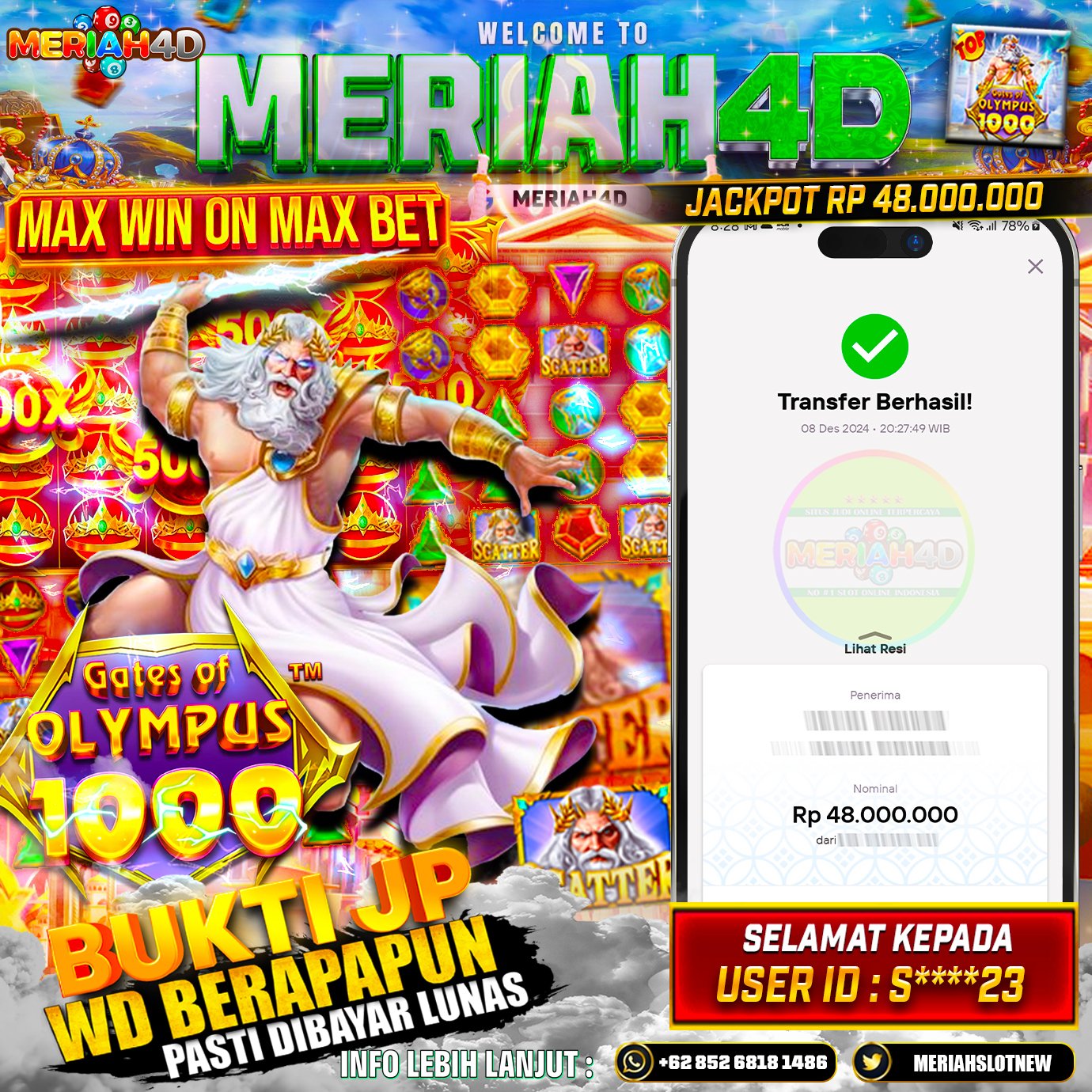 Selamat Kepada Id : S*******23 Atas Withdraw Rp. 48.000.000 Juta Hari ini. Ditunggu Withdraw Selanjutnya dan ajak juga teman temannya bergabung di Meriah4d