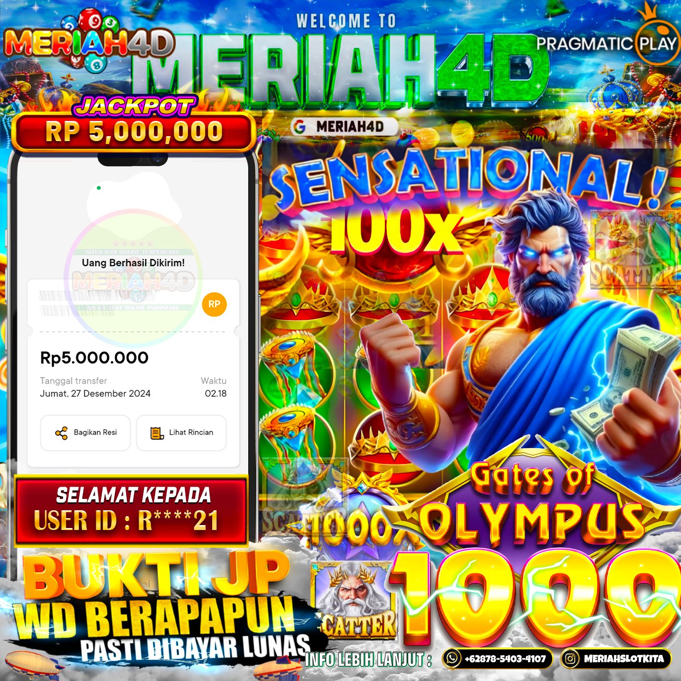 MERIAH4D Bukti Kemenangan Slot GATES OF OLYMPUS 1000