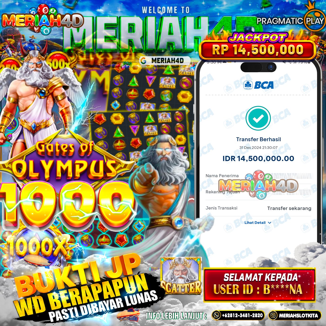 MERIAH4D Bukti Kemenangan Slot GATES OF OLYMPUS 1000