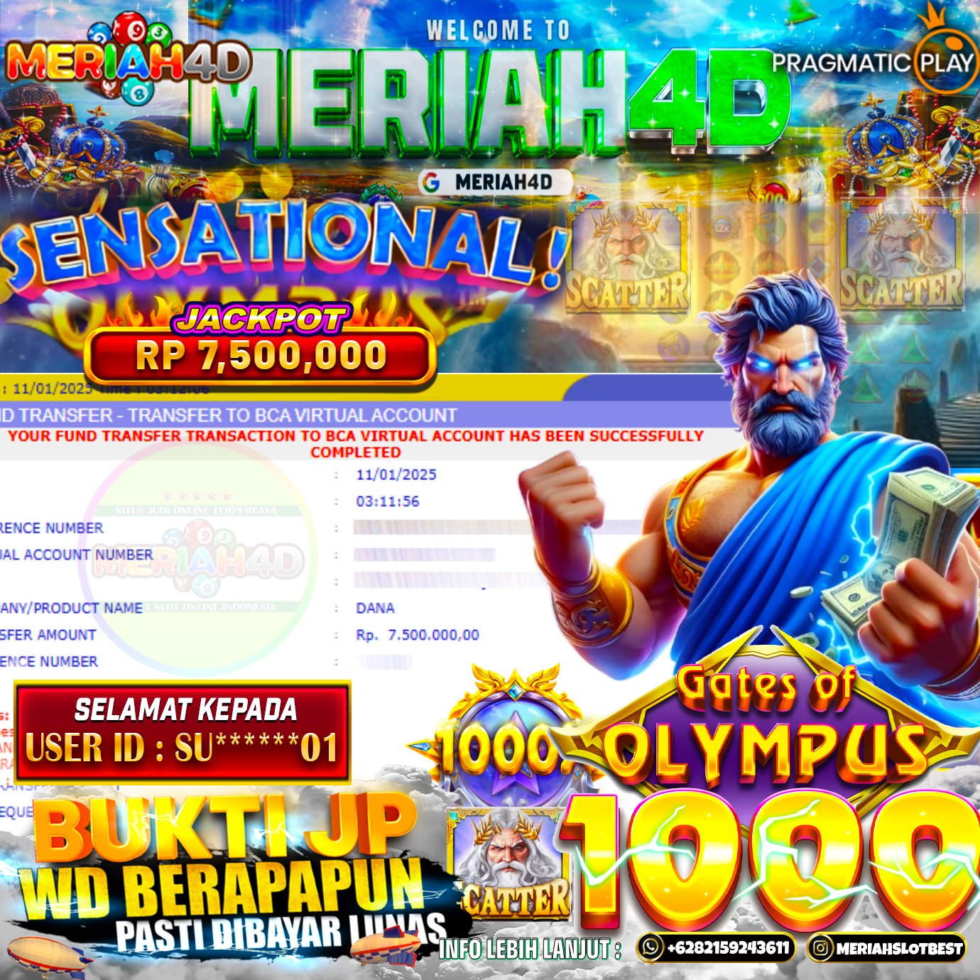 MERIAH4D Bukti Kemenangan Slot GATES OF OLYMPUS 1000