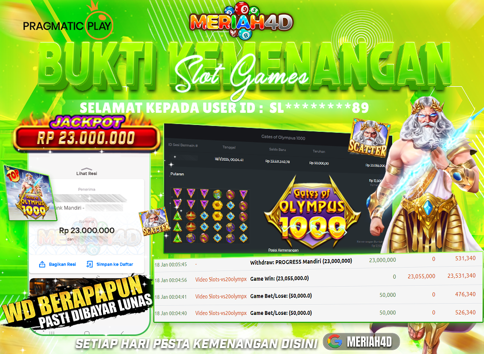 Selamat Kepada ID : SL******89 Atas Withdraw Rp. 23.000.000 Juta Hari ini. Ditunggu Withdraw Selanjutnya dan ajak juga teman temannya bergabung di Meriah4d