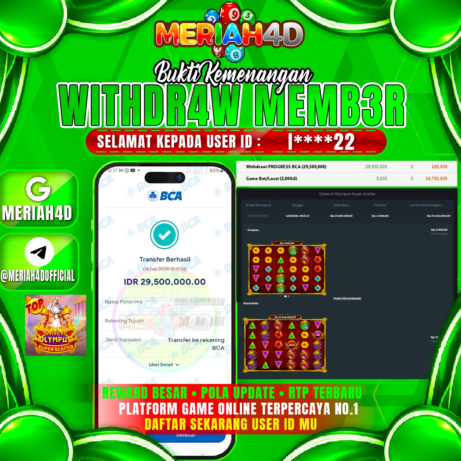 MERIAH4D Bukti Kemenangan SLOT GATES OF OLYMPUS SUPER SCATTER