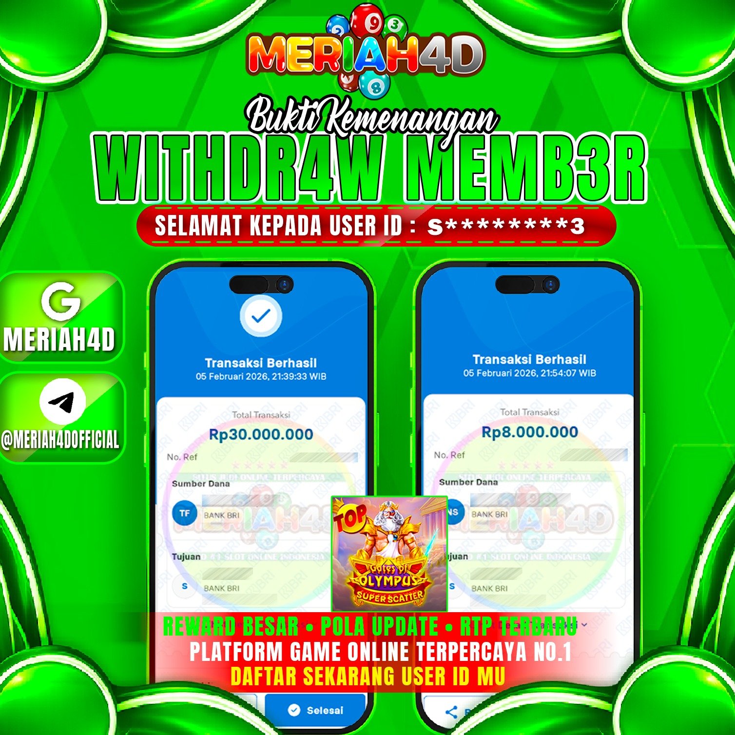 Selamat Kepada ID : s********3 Atas Withdraw Rp. 38.000.000 Juta Hari ini. Ditunggu Withdraw Selanjutnya dan ajak juga teman temannya bergabung di Meriah4d